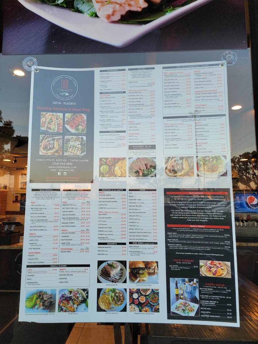 Welcome to FOB Tustin, previously known as Fresh Off The Boat Fish Grill, where Mediterranean flavors shine through a vibrant menu. Located in Tustin, CA, this gem serves a mouthwatering selection that caters to all appetites.